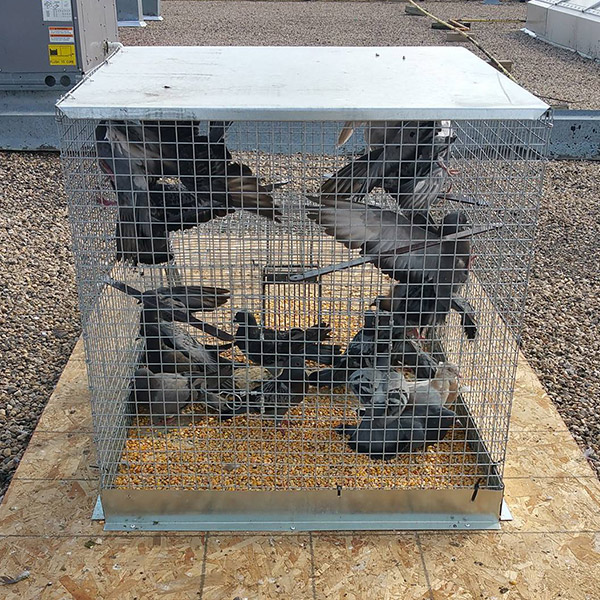 Utilizamos gaiolas com capacidade de 30 a 1000 pombos por captura.